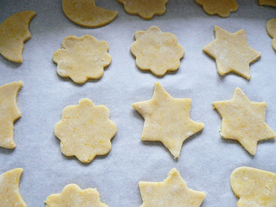 godzinę. Na stolnicy wałkuję i wycinam różne kształty za pomocą foremek.